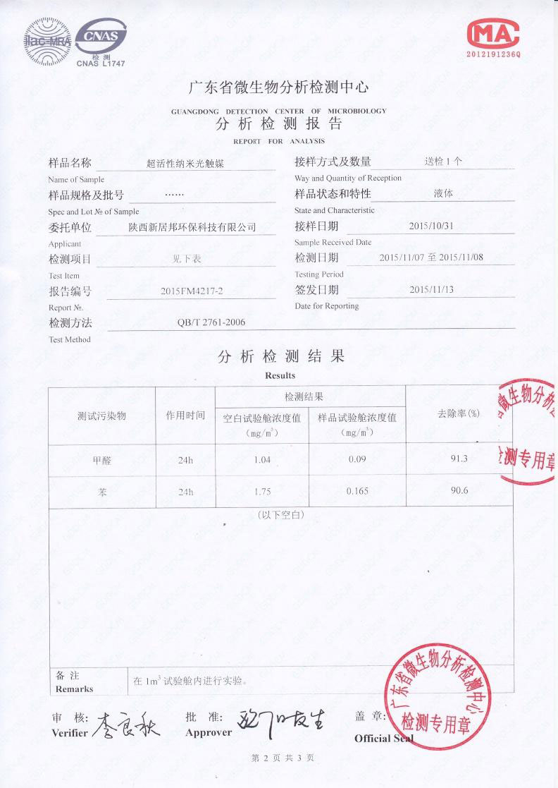 立美凈光觸媒凈化效率檢測報告