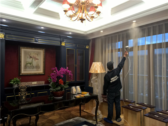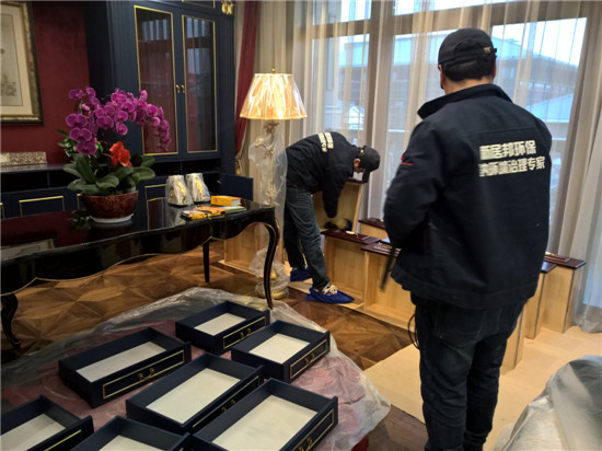 本次由陜西新居邦環(huán)??萍加邢薰境薪拥奈靼睬始一▓@別墅全屋空氣凈化服務(wù),歷時(shí)三天,總甲醛治理建筑面積超1000平方,共五層。新居邦環(huán)保技術(shù)團(tuán)隊(duì)在充分研究別墅高檔豪華裝修、全屋進(jìn)口家具、全實(shí)木花梨木成套柜體、實(shí)木地板等全屋環(huán)境及污染源構(gòu)成后,分別采取高溫?zé)峤馀浜蠠犸L(fēng)槍祛除實(shí)木家具外飾油漆異味、高分子聚合技術(shù)無縫覆蓋軟體家居、立美凈除醛凈味雙效觸媒高效噴涂木制柜體、立美凈超活性納米光觸媒全屋長(zhǎng)效凈化等綜合施工技術(shù),從空氣異味釋放源、甲醛長(zhǎng)期釋放源等源頭上解決并提升空氣質(zhì)量。