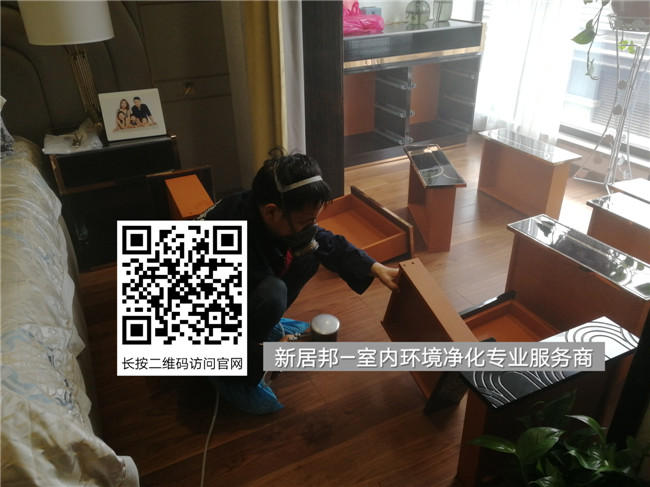 高檔豪華的裝修,進(jìn)口家具,真的甲醛就少了嗎?未必,位于西安高新區(qū)的丹軒梓園某業(yè)主打算最近入住,特地先對(duì)室內(nèi)空氣檢測(cè),結(jié)果發(fā)現(xiàn)甲醛輕度超過國(guó)家標(biāo)準(zhǔn)0.10毫克/立方米,達(dá)到0.13毫克/立方米,即使是甲醛輕微超出國(guó)家標(biāo)準(zhǔn),業(yè)主也擔(dān)心影響孩子身體健康,果斷選擇除甲醛公司-新居邦環(huán)保為此進(jìn)行了精細(xì)化除甲醛施工,以下是新居邦環(huán)??萍汲兹┦┕と藛T對(duì)業(yè)主家的隱蔽污染源、全屋家具進(jìn)行精細(xì)甲醛處理: