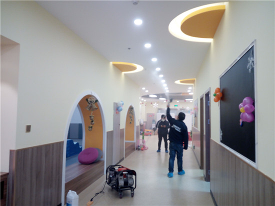 位于西安鳳城十路的紅黃藍(lán)親子樂(lè)園是一家專業(yè)的親子教育機(jī)構(gòu),對(duì)于園區(qū)的空氣質(zhì)量家長(zhǎng)們十分關(guān)心,特點(diǎn)選擇了西安除甲醛公司中較為知名的新居邦環(huán)保科技進(jìn)行處理,施工結(jié)束當(dāng)天室內(nèi)空氣異味就得到顯著改善,目前已經(jīng)順利通過(guò)第三方CMA實(shí)驗(yàn)室檢測(cè)機(jī)構(gòu)驗(yàn)收,下面是部分施工照片:
