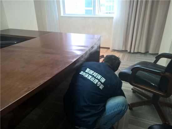 我公司施工人員對(duì)木制品家具進(jìn)行除甲醛作業(yè)