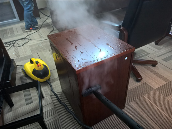 我公司施工人員對(duì)油漆味家具表面進(jìn)行高溫熏蒸除油漆味作業(yè)