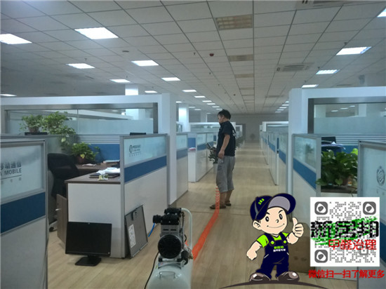 位于咸陽彩虹二路的咸陽移動公司在辦公室剛裝修后就投入了使用,不少員工辦公一段時間后不同程度地出現(xiàn)咳嗽、過敏癥狀,西安除甲醛品牌-新居邦環(huán)保以完善專業(yè)的技術(shù)解決方案征服了移動公司領(lǐng)導(dǎo)。由于已經(jīng)入駐辦公,給除甲醛施工帶來了一定難度,公司技術(shù)部擬定待甲方員工下班后再實施除甲醛處理,整個工期分為連續(xù)4個晚上加班加點施工除甲醛,分區(qū)域逐步推進策略,目前整個工程已經(jīng)完工,辦公室室內(nèi)空氣質(zhì)量明顯改善,刺鼻刺激感完全消失。以下為部分施工現(xiàn)場: